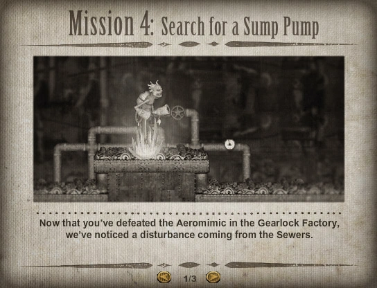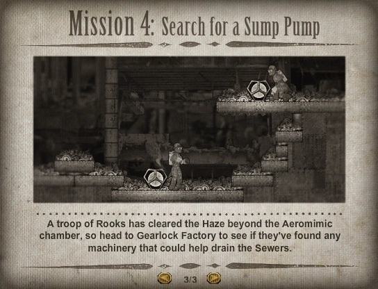 Quest giver: Now that you've defeated the Aeromimic in the Factory, we've noticed a disturbance coming from the Sewers. Unfortunately the Sewers at the Inlet are flooded, so we need to find a working sump pump to drain the water before you enter. A troop of Rooks has cleared the haze beyond the Aeromimic chamber, so head to the Gearlock Factory to see if they've found any machinery that could help drain the Sewers.