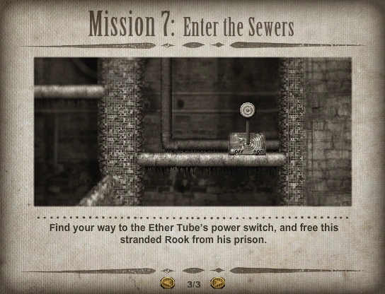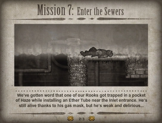 Quest giver: We finally have access to the Steamport Sewers. We've sent a number of Rooks in to install a circuit of Ether Tubes for protection, and to scout ahead for the disturbance we've been noticing coming from below. We've gotten word that one of our Rooks got trapped in a pocket of haze while installing an Ether Tube new the Inlet entrance. He's still alive thanks to his gas mask, but he's weak and delirious, unable to escape from the cloud of haze. Find your way to the Ether Tube's power switch, and free this stranded Rook from his prison.