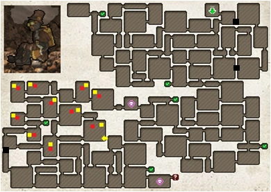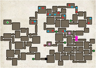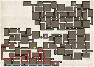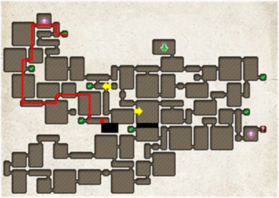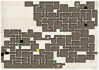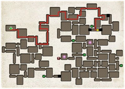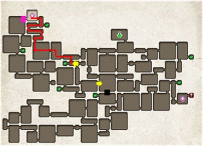 Black rectangles: Other blocked paths. This includes miscellaneous things like the doors to Gearlock Factory or the manhole at the Sewer Inlet, etc.