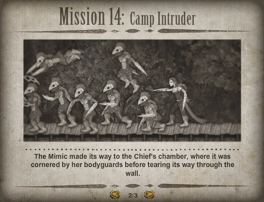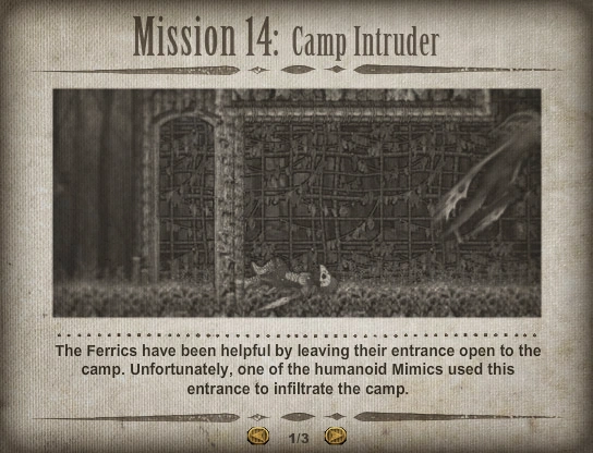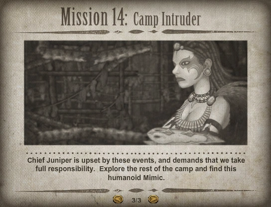 Quest giver: The Ferrics have been helpful by leaving their entrance open to the camp. Unfortunately, one of the humanoid Mimics used this entrance to infiltrate the camp. The Mimic made its way to the Chief's chamber, where it was cornered by her bodyguards before tearing its way through the wall. Chief Juniper is upset by these events, and demands that we take full responsibility. Explore the rest of the camp and find this humanoid Mimic.