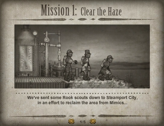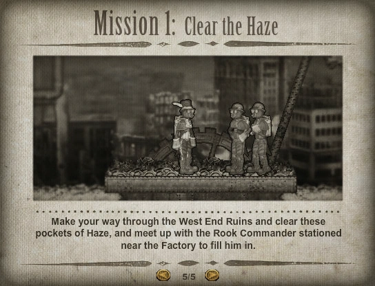 Quest giver: We've sent some Rook scouts down to the West End Ruins in Steamport City, but they've been having trouble with pockets of haze blocking their passage through the area. We have some Ether Tube installations in the area for protection, but someone or something has switched off the power to these tubes, allowing the haze to linger. Make your way through the ruins and clear these pockets of haze, and meet up with the Rook Commander stationed near the factory to fill him in.