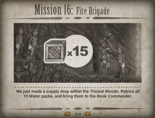 Quest giver: Nidaria has developed some new retro-fitted Waterpacks for the Rooks on the ground, and have done a supply drop in the Thicket Woods with these items. Explore the Woods area to find the drops, and deliver the packs to the Rooks waiting at the wall of fire.