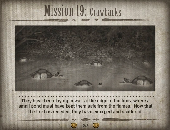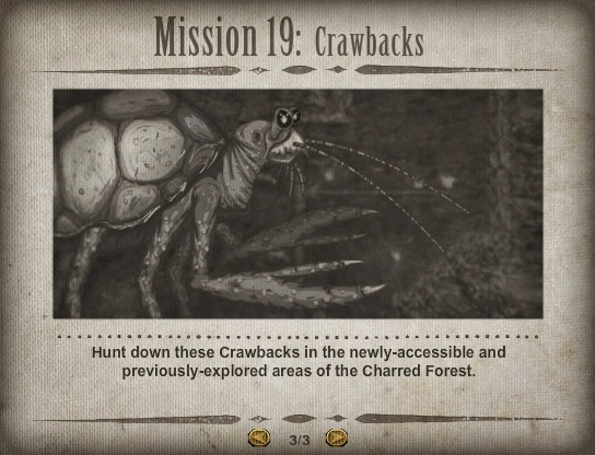 Quest giver: Moving closer towards the supposed Remnant site, a new type of Mimic called Crawbacks have toppled a tree barrier and infiltrated the Charred Forest. They have been laying in wait at the edge of the fires, where a small pond must have kept them safe from the flames. Now that the fire has receded, they have emerged and scattered. Hunt down these Crawbacks in the newly-accessible and previously-explored areas of the Charred Forest.