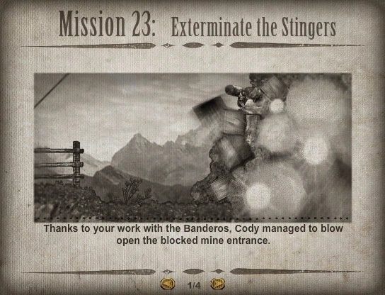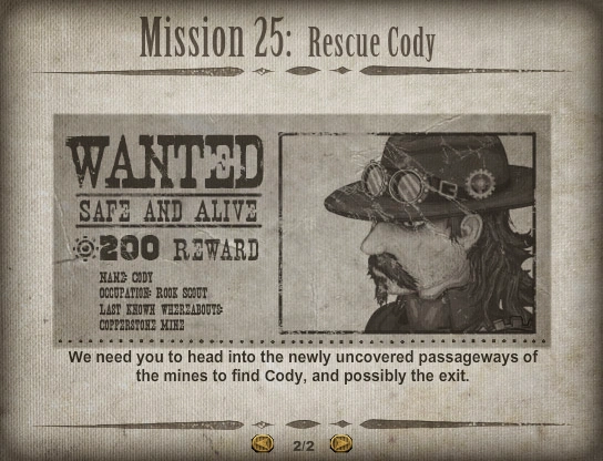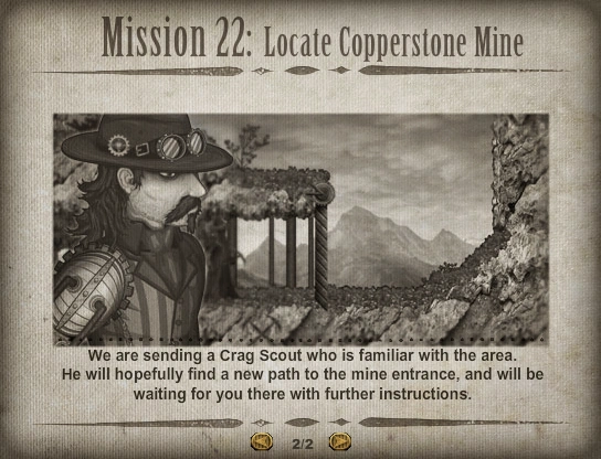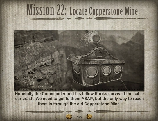 Quest giver: Hopefully the Commander and his fellow Rooks survived the cable car crash. We need to get to them ASAP, but the only way to get to them is through the old Copperstone Mine. We are sending a Crag Scout who is familiar with the area. He will hopefully find a new path to the mine entrance, and will be waiting for you there with further instructions. Cody's comments at the Mine entrance: If yer lookin' for some more Banderos, look for the flags n' tents about. There's a path right above where I met some as well.