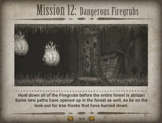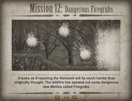 Quest giver: Firegrub Mimics have spread from the wildfire into untouched areas of the Thicket Woods. Some have burned through dry logs and opened access to unexplored areas. Find and exterminate all 12 of the Firegrubs before the entire forest is ablaze!