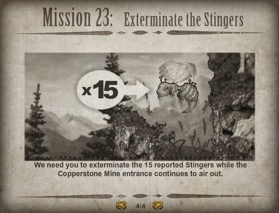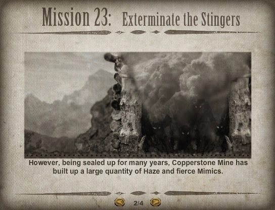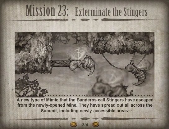 Quest giver: Thanks to your work with the Banderos, Cody managed to blow open the blocked mine entrance. However, being sealed up many years, Copperstone Mine has built up a large quantity of Haze and fierce Mimics. A new type of Mimic the Banderos call Stingers have escaped from the newly-opened Mine. They have spread out across the Summit, including newly-accessible areas. We need you to exterminate the 15 reported Stingers while the Copperstone Mine continues to air out.
