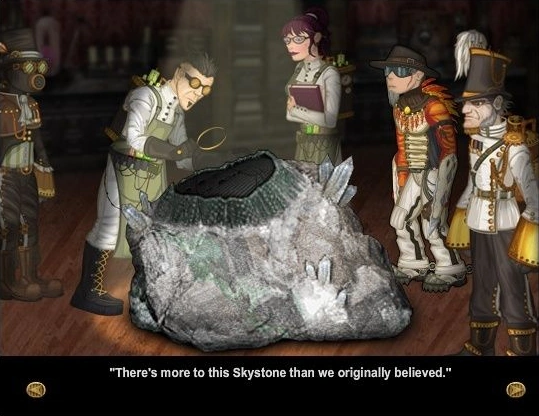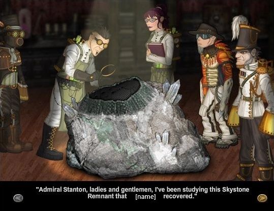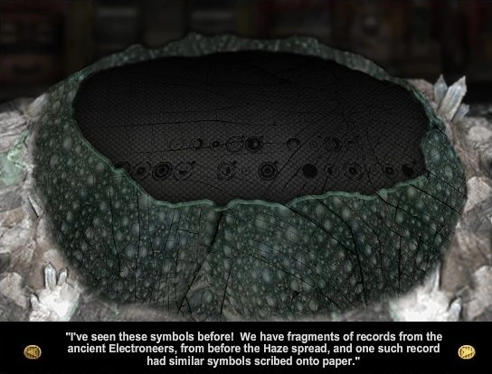 Otto von Tesla's remarks after finding the Remnant:Admiral Stanton, ladies and gentlemen, I've been studying this Skystone Remnant that [character's name] recovered. It seems very similar to the others, but there's something quite startling about this one. Look right here, on the surface of this protrusion! There are row [sic] of circular shapes, carved right into the surface of the object! And that's not the strangest part.. I've seen these symbols before! We have fragments of records from the ancient Electroneers, from before the Haze spread, and one such record had similar symbols scribed onto paper. We've never understood what the symbols are, or if they have any meaning. But I do know one thing for certain... There's more to this Skystone than we originally believed.