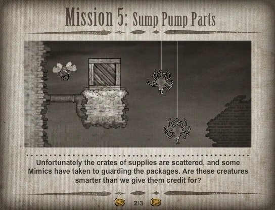 Quest giver: We've made the supply drop to restore the Sump Pump. Unfortunately the crates of supplies are scattered, and some Mimics have taken to guarding the packages. Are these creatures smarter than we give them credit for? At any rate, find the supply crates and deliver the parts to the Rook at the FactorySump Pump. You should find all the crates in the outside West End Ruins area.